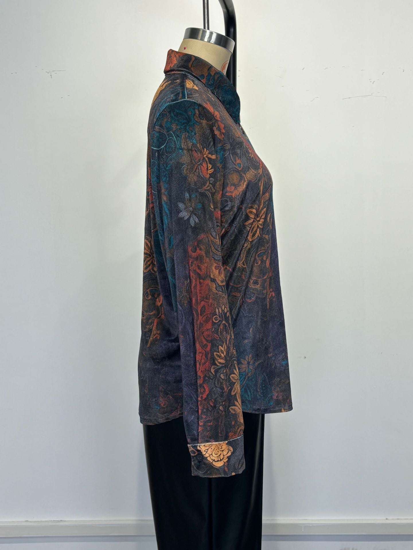This beautiful button-down blouse is a celebration of vintage-inspired style, featuring an all-over floral pattern. Designed with a relaxed, flowing fit, classic long sleeves, and a full button-up front, this top is your passport to creating looks that are both romantic and effortlessly cool.